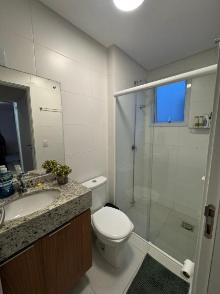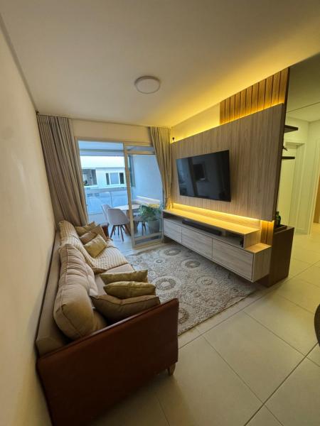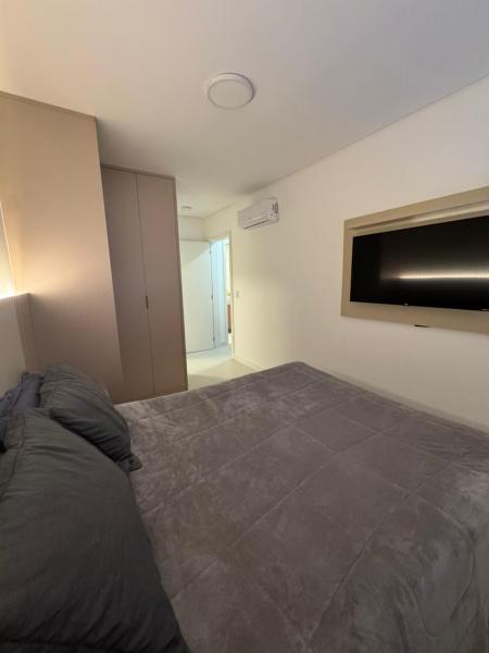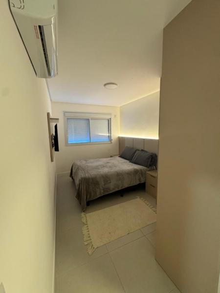 Apartamento com dois dormitórios, sala de estar com Tv, cozinha, internet WiFi, um banheiro, sacada com churrasqueira e garagem privada para um carro.