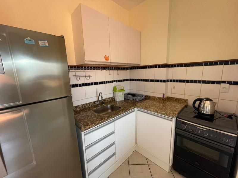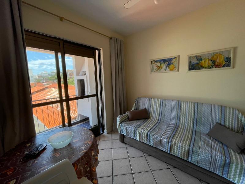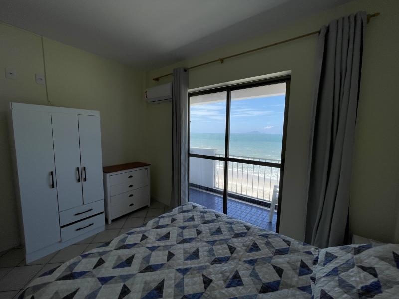 Apartamento de 1 dormitório com sacada frente mar, 1 banheiro, sala de estar, cozinha, sacada com churrasqueira, roupa de cama, internet WiFi e 1 vaga de garagem coberta.