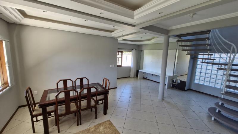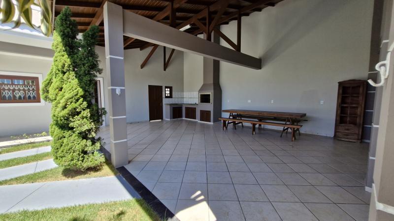 Além disso, dispõe de hall de entrada, sala de estar e jantar, cozinha, área de serviço, depósito, garagem para até três veículos e churrasqueira.